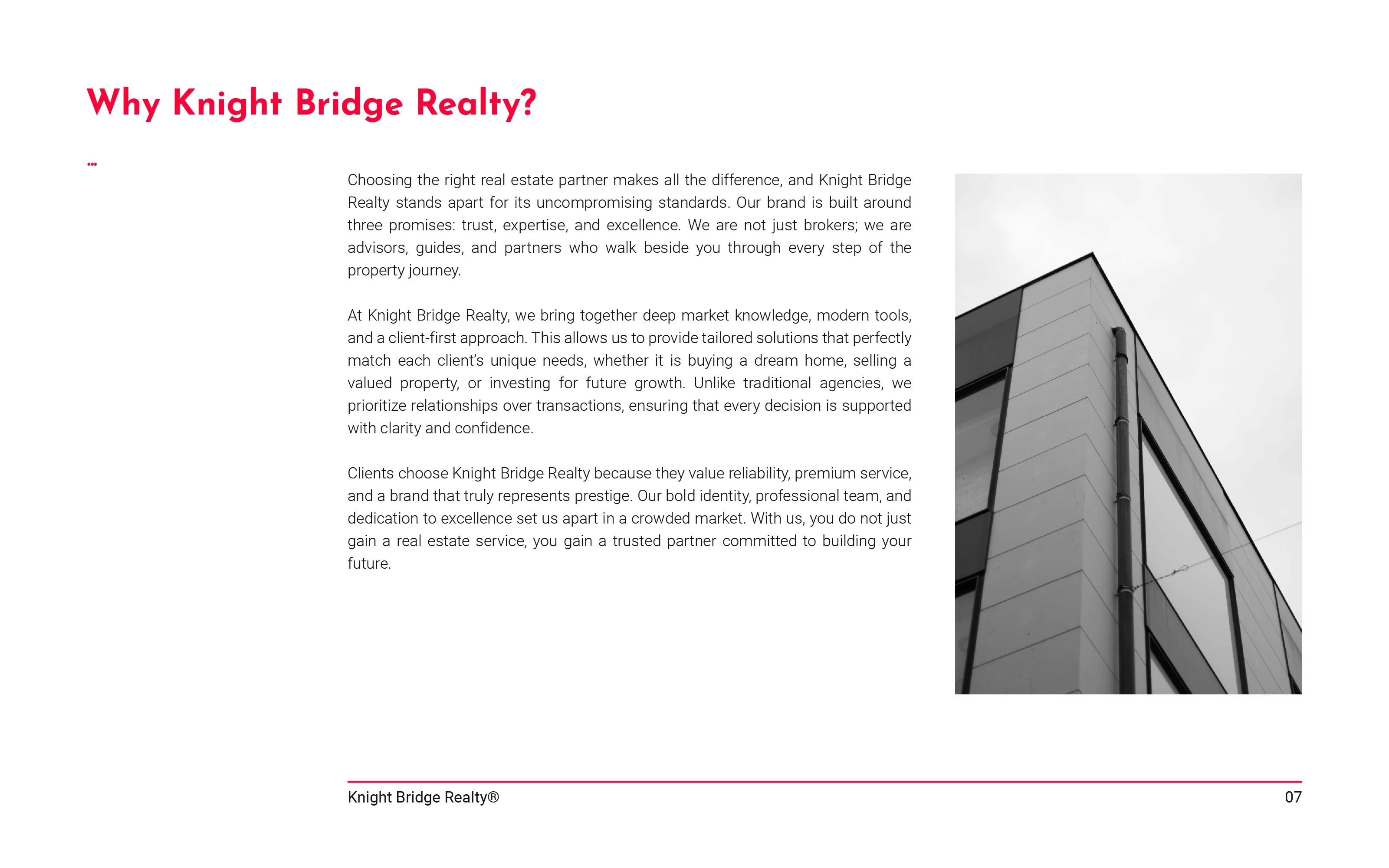 Knight Bridge Realty needed more than just a logo, they needed a brand system that reflected their promise of trust, prestige, and modern living.